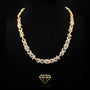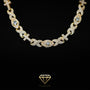 Bold center stones surrounded by accented stones, MMJ’s infinity crosseye Necklace is a bold new upgrade from the traditional classic tennis chain look. Each layer draws attention to its larger center stones, causing it to catch light from all angles.